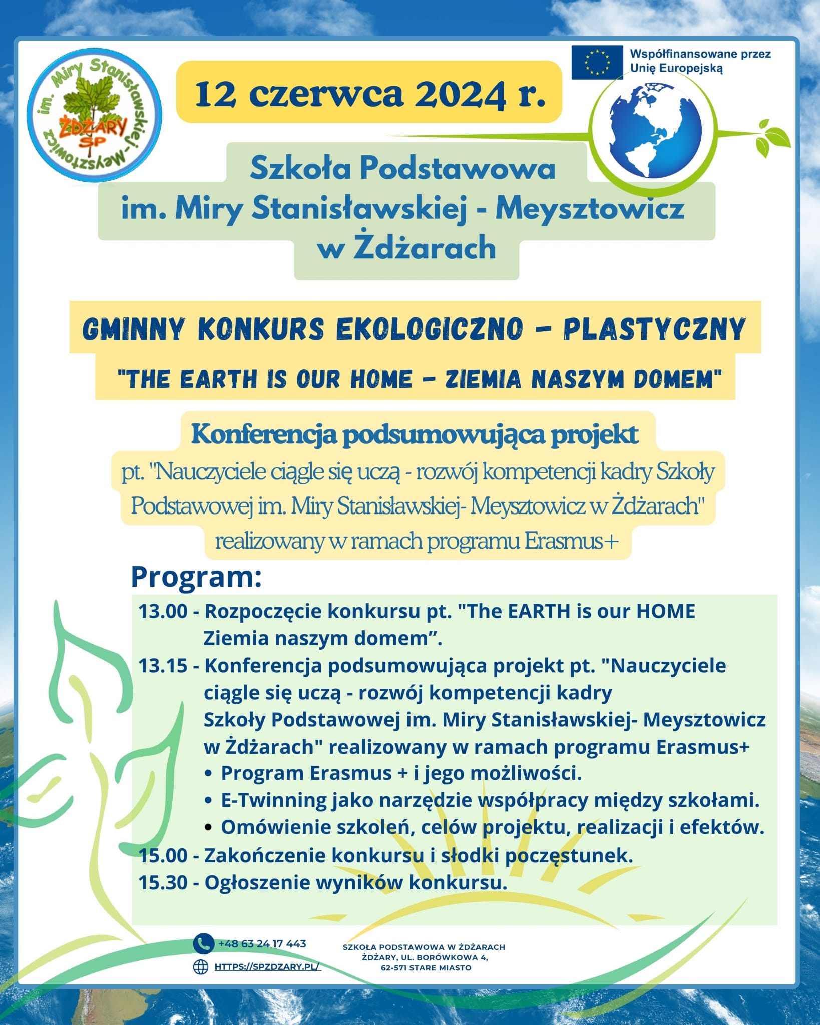12 czerwca w naszej szkole odbędzie się konferencja podsumowująca projekt realizowany w ramach programu Erasmus+ oraz Gminny Konkurs Ekologiczno-Plastyczny.